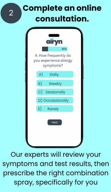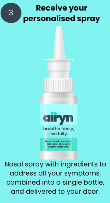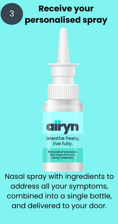 Airyn uses personalised combinations of prescription ingredients, selected and dosed based on your individual symptoms and triggers, all in a single treatment plan.