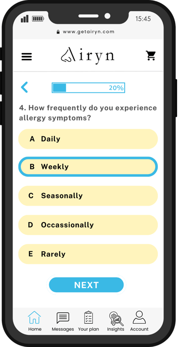 Get Airyn and wave goodbye to a runny nose, itchy eyes, sneezing, post-nasal drip, blocked nose, terrible sleep, brain fog...